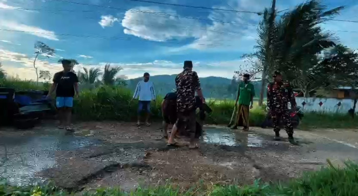 “Kerusakan jalan sudah cukup parah dan beberapa kali menyebabkan kecelakaan karena banyaknya lubang di badan jalan. Karena itu kami bersama Ansor dan Banser berinisiatif melakukan penambalan secara swadaya,” kata Hayat.
