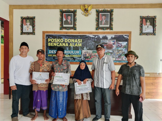 Penyerahan bantuan dilakukan langsung oleh Wakil Ketua I Baznas Sumenep Sugeng Haryadi bersama Camat Pragaan Indra Hermawan, dan Kepala Desa Karduluk Ahmad Faruq.