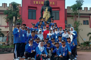 | Peserta Latsar Gel. 3 CPNS Pamekasan foto bersama di depan patung Gajahmada ada Watukosek. |