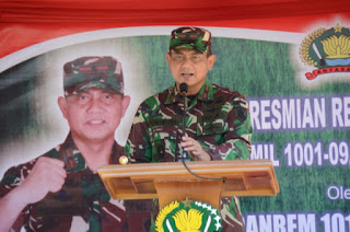 | BAKAR SEMANGAT PRAJURIT: Danrem 101/Antasari, Brigjen TNI Firmansyah saat menyampaikan pengarahan saat peresmian hasil renovasi secara gotong royong Makoramil 1001-09/Amuntai Selasa, 28 Juli 2020.foto Penrem 101 For LensaMadura.Com |