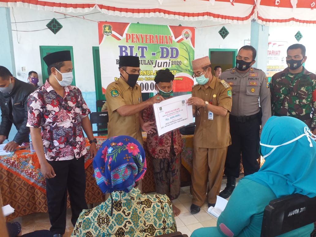 LensaMadura.Com, Sumenep – Warga terdampak pandemi Covid-19 di Desa Banuaju Barat, Kecamatan Batang-Batang, Sumenep, Jawa Timur kembali terima BLT-DD Senin siang, 3 Agustus 2020.