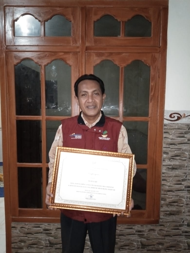 Bangkalan- M. Hanafi, Pendamping Program Keluarga Harapan (PKH) Kecamatan Geger, Kabupaten Bangkalan, Jawa Timur mendapat penghargaan langsung dari Kementrian Sosial (Kemnsos RI) atas keberhasilannya dalam melakukan Graduasi Mandiri Sejahtera kepada 185 Keluarga Penerima Manfaat (KPM) PKH di Desa Kombengan, Kecamatan Geger Kabupaten Bangkalan, selama tahun 2020.