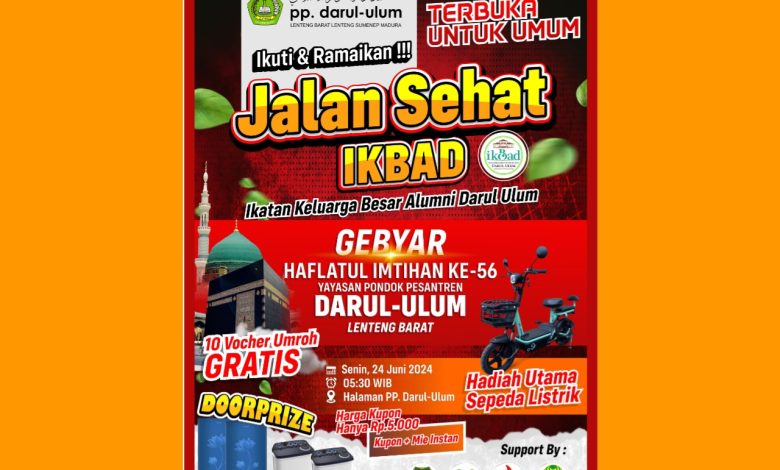 SUMENEP, lensamadura.com – Ikatan Keluarga Besar Alumni Darul Ulum (IKBAD) akan menggelar kegiatan Jalan Jalan Sehat (JJS).