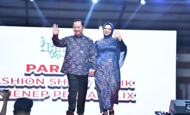 SUMENEP, lensamadura.com – Kepala Bappeda Sumenep, Arif Firmanto, bersama sang istri, Asih Wulandari, turut memeriahkan Parade Fashion Show Batik Sumenep Pentahelix di lapangan GOR A Yani, Panglegur, Minggu, 8 September 2024 malam.